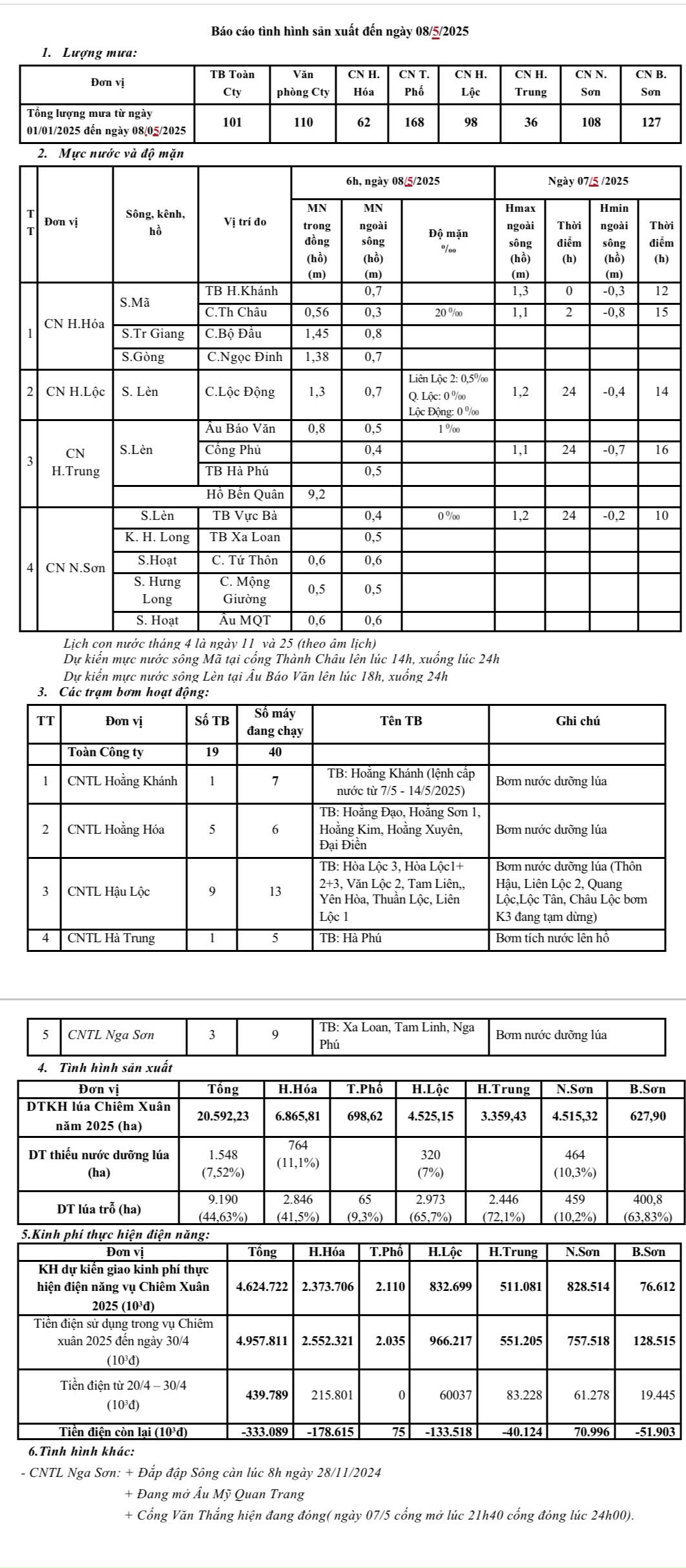Báo cáo tiến độ sản xuất ngày 08/5/2025