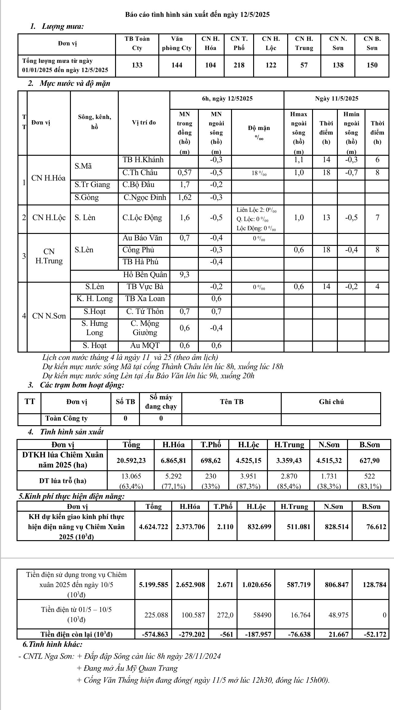 - Báo cáo tiến độ sản xuất ngày 12/5/2025