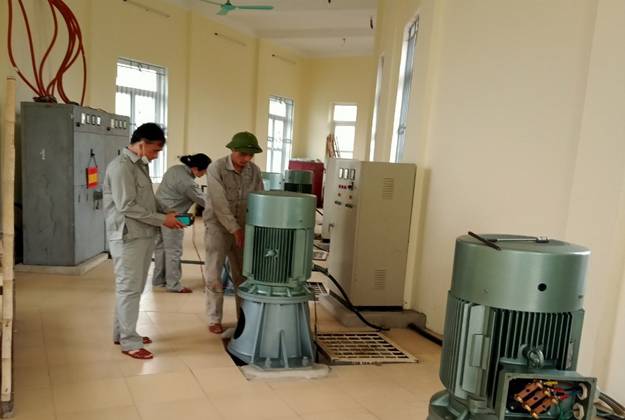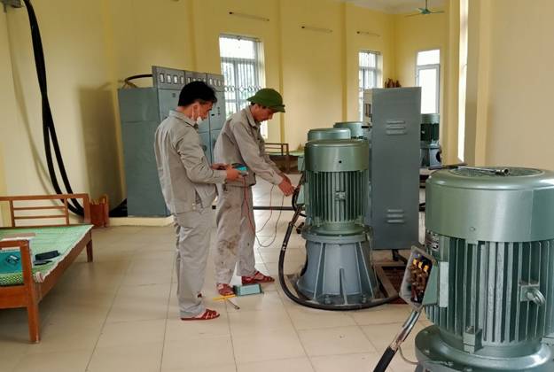 Công nhân đang thực hiện quay đo động cơ TB Hoằng Lý